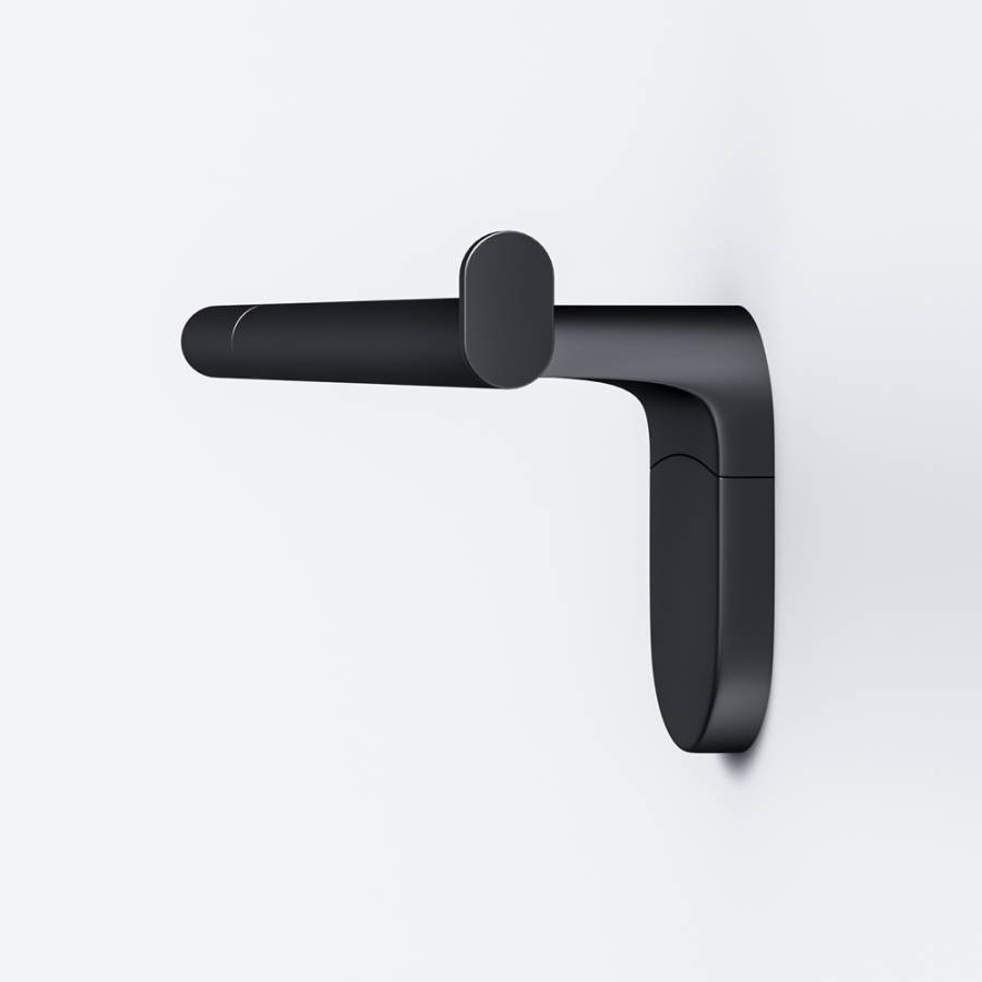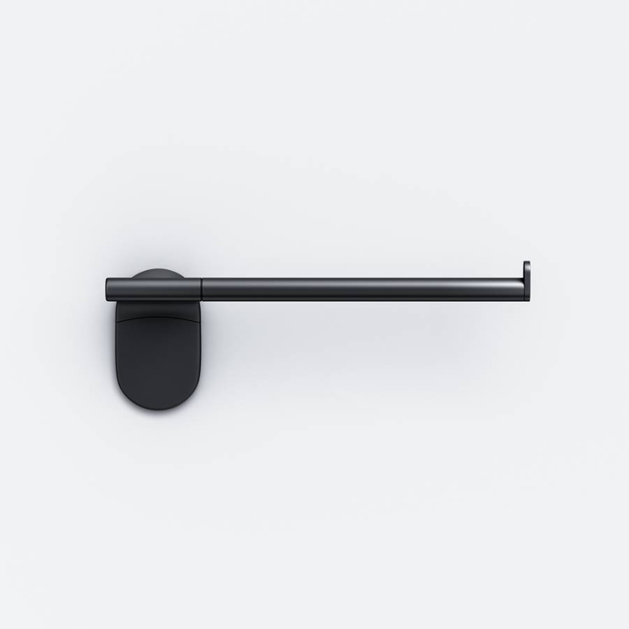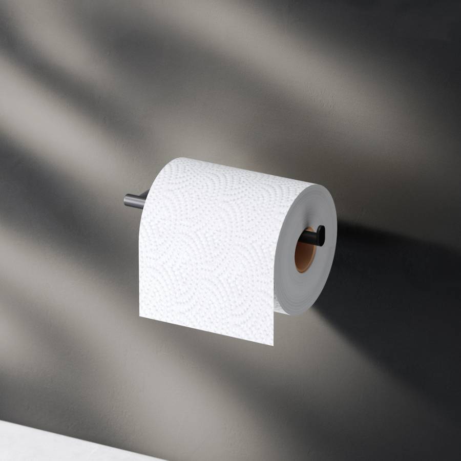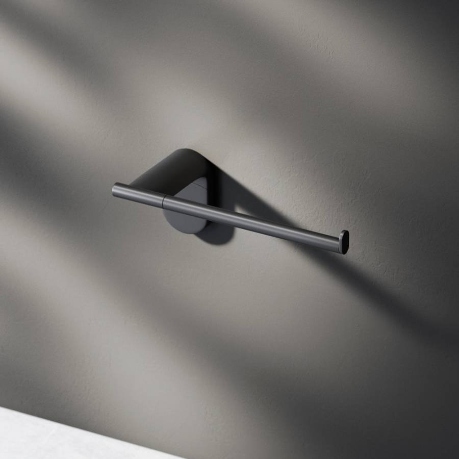 - Металлический аксессуар в матовом черном цвете для хранения туалетной бумаги.
