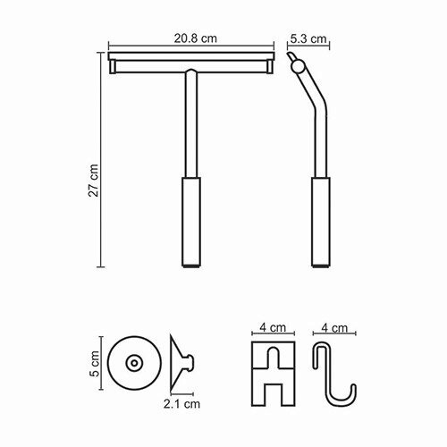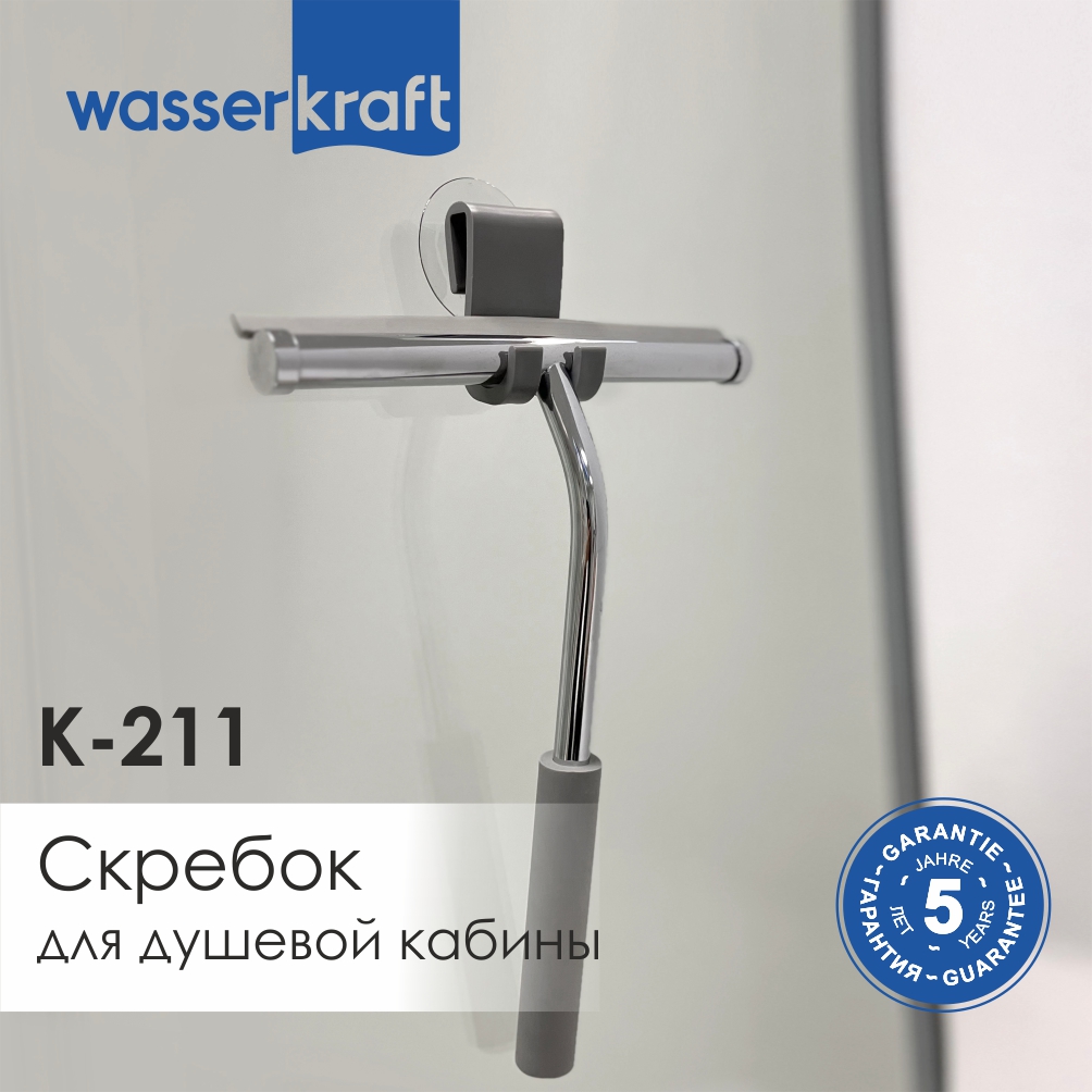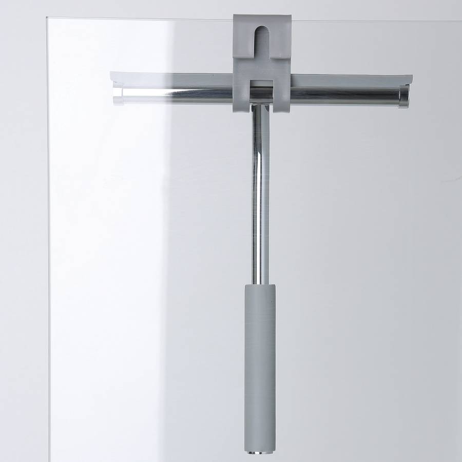 Скребок К-211 можно закрепить двумя способами: с помощью вакуумной присоски к стене или стеклу, либо с помощью пластикового крючка за стеклянный бортик душевой кабины (при условии, что толщина стекла не превышает 2 см). При необходимости скребок можно перевесить в удобное для Вас место.