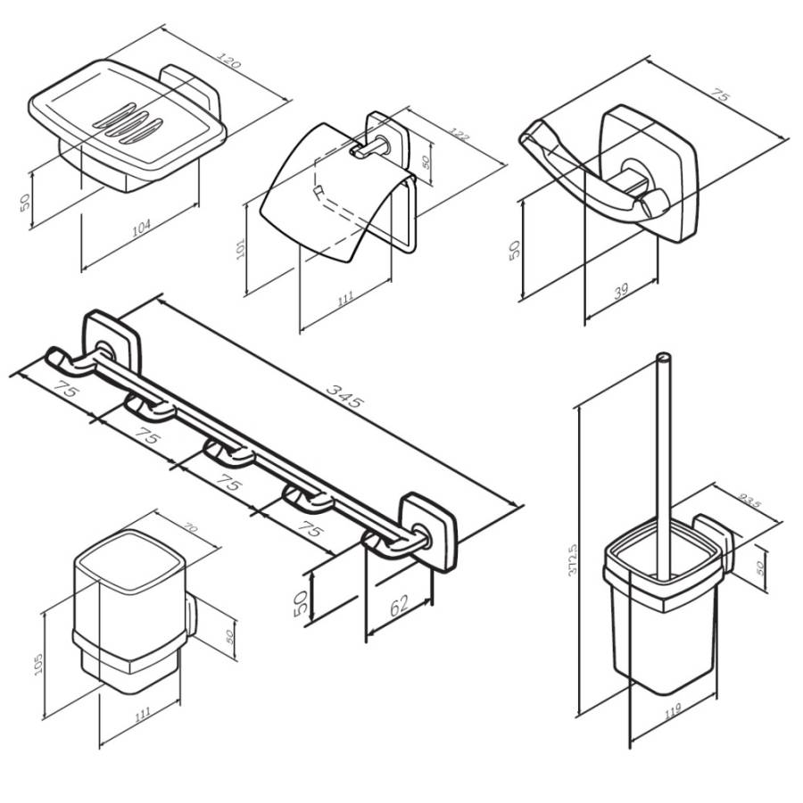 Занимая минимум места в пространстве аксессуары Gem помогут рационально организовать место для хранения и станут стильными акцентами в интерьере. В комплекте: стеклянная мыльница стеклянный стакан набор крючков для полотенец двойной крючок для полотенец держатель для туалетной бумаги с крышкой стойка с туалетной щеткой._x000D_