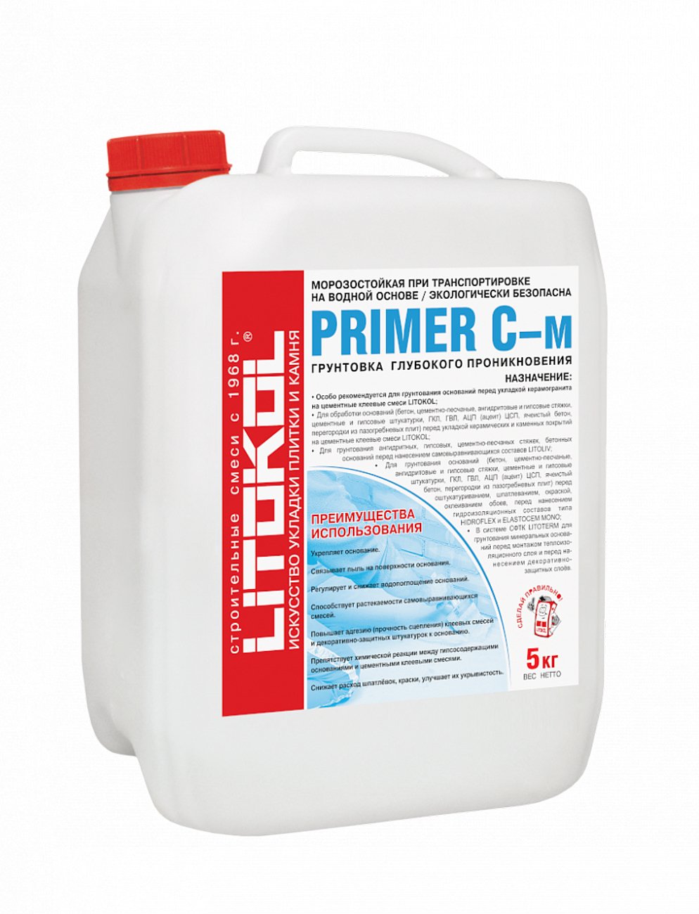 Грунтовка PRIMER С-м предназначена для подготовки минеральных оснований перед укладкой керамических облицовок на цементные клеевые смеси: LITOKOL X11, LITOKOL K17, LITOKOL K47, LITOPLUS K55, LITOFLOOR K66, SUPERFLEX K77, LITOFLEX K80, LITOFLEX K80 ECO, LITOFLEX K81, LITOSTONE K98, LITOSTONE K99, LITOSTONE K98/K99 + LATEXKOL-м, LITOKOL X11 + LATEXKOL-м.
