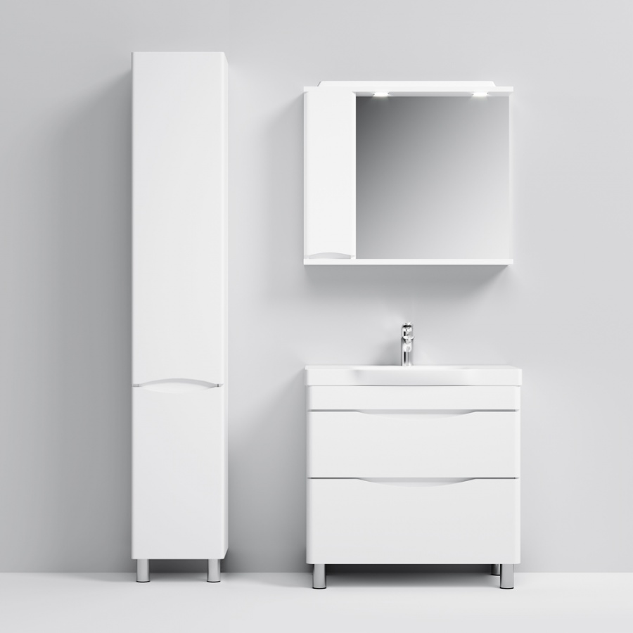 Утонченность в деталях: удобные интегрированные в фасад ручки идеально повторяют изгиб выступа раковины.
