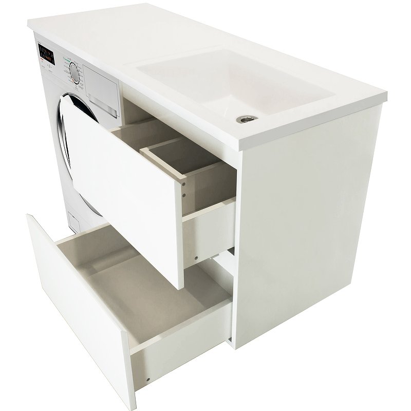 Мебель выполнена из влагостойкого ЛДСП и качественного MDF с использованием эмали RENNER (Италия). Ящики снабжены системой плавного закрывания. Для мебели используется фурнитура BLUM (Австрия)