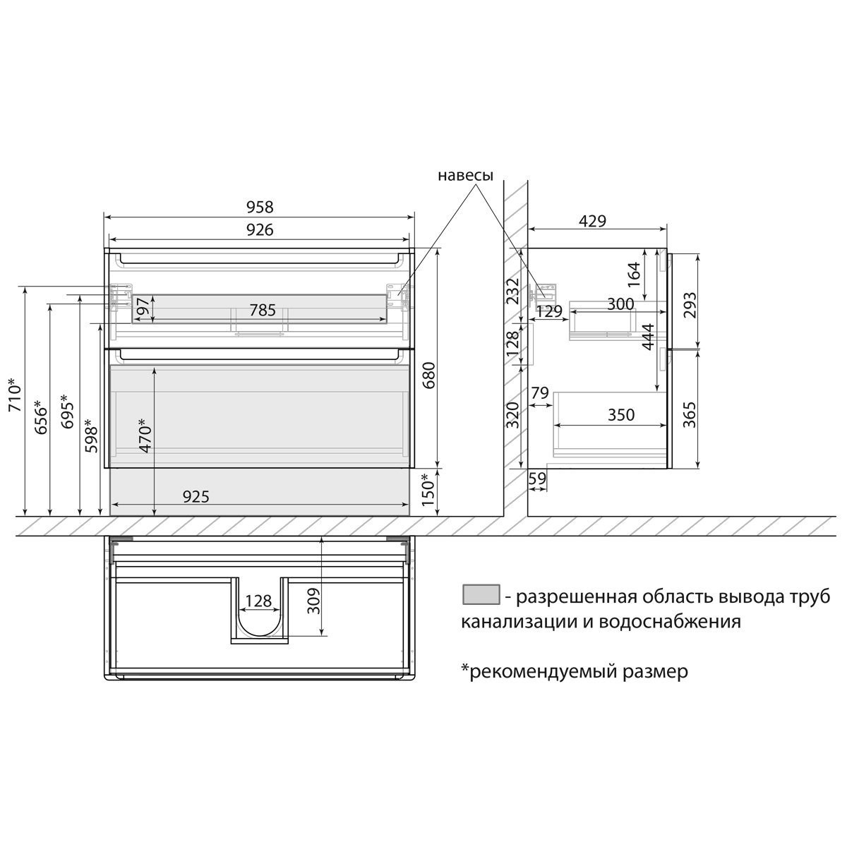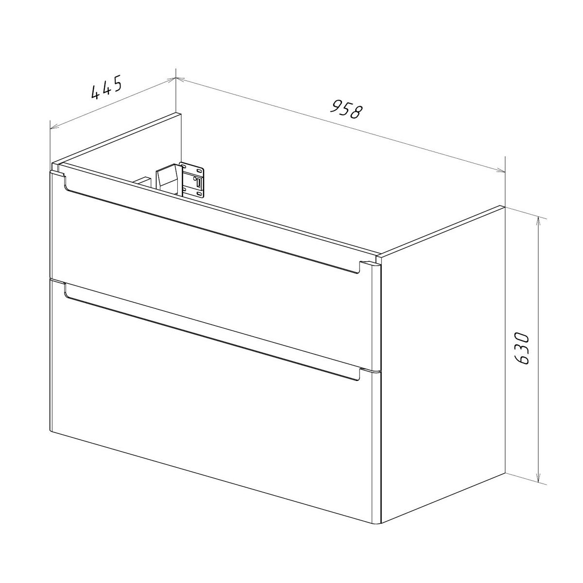 •Габариты без раковины (ШГВ): 958х445х630 мм;