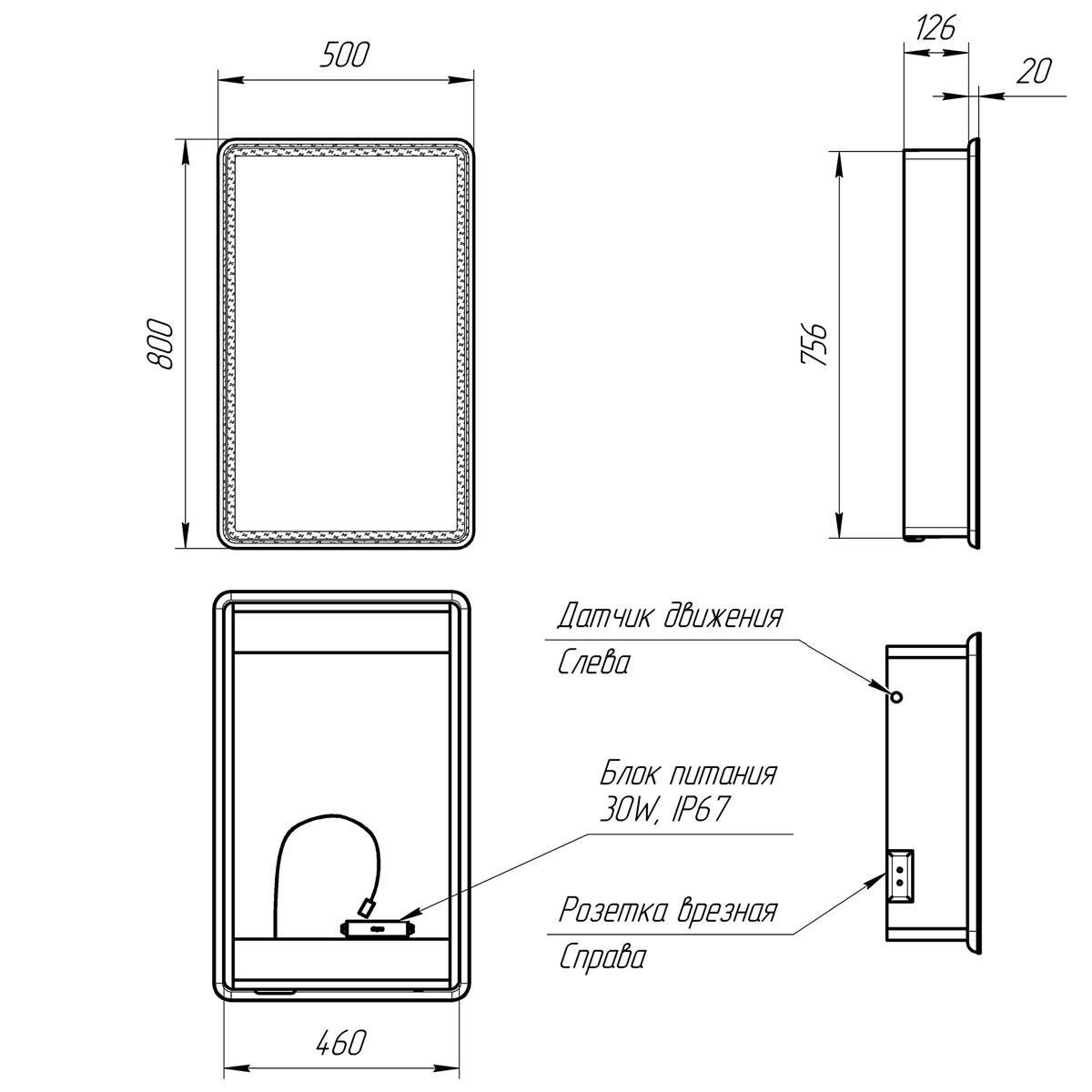 •Габариты (ШГВ): 500х146х800 мм;