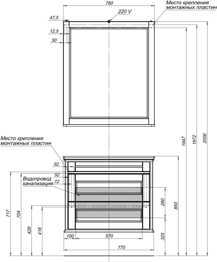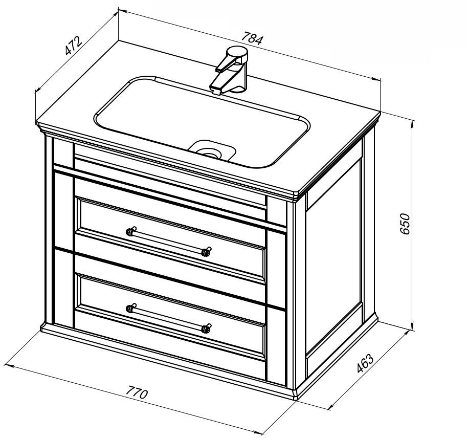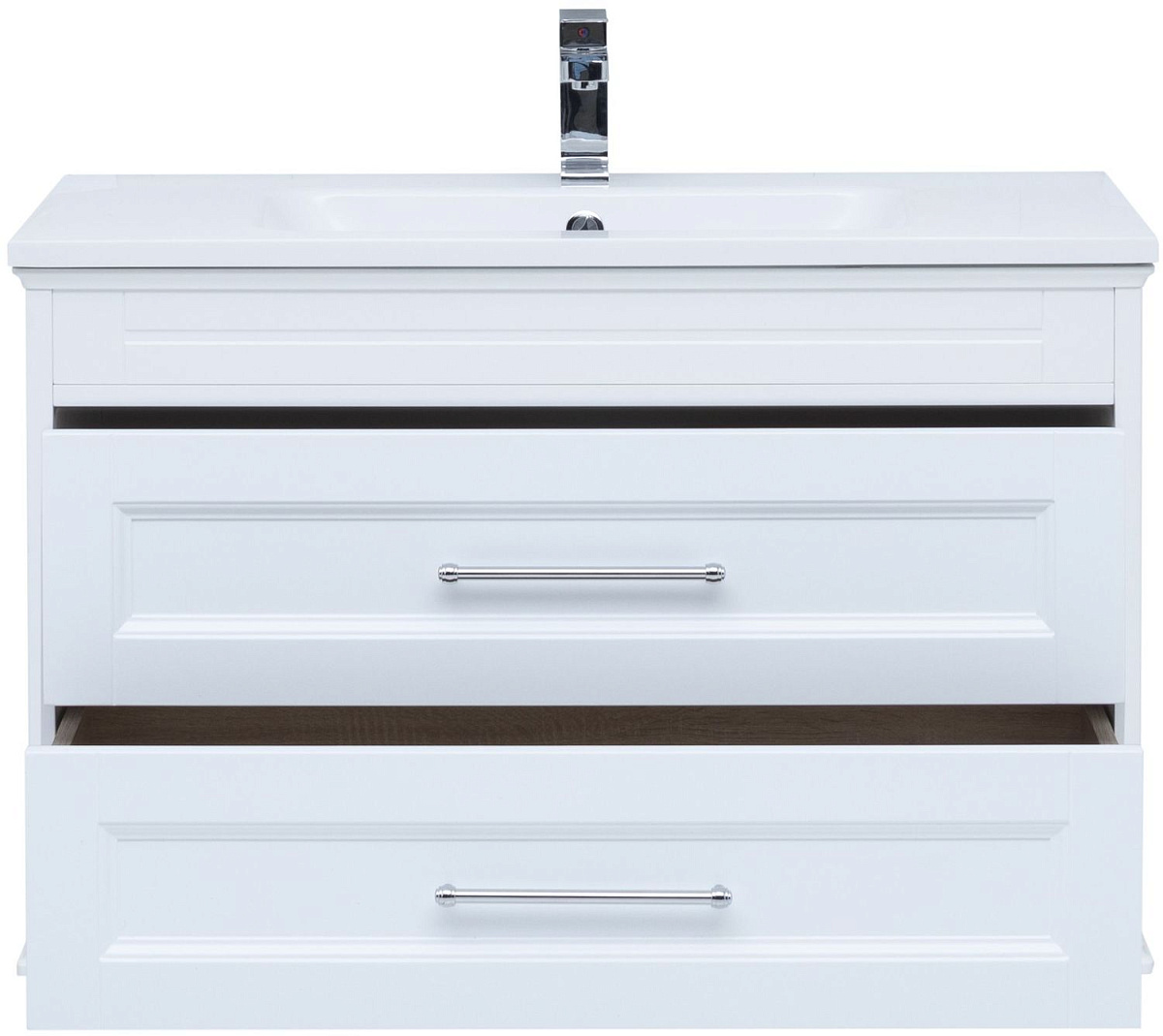 Тумба выполнена в белом цвете. Классический дизайн тумбы подчеркнет индивидуальный стиль ванной комнаты. Модель имеет 2 выдвижных ящика, оборудованных доводчиками. Верхний ящик состоит из трех отделений, что делает его удобным для хранения всевозможных мыльных принадлежностей. В нижнем удобно хранить какие-то объемные вещи, полотенца, к примеру.