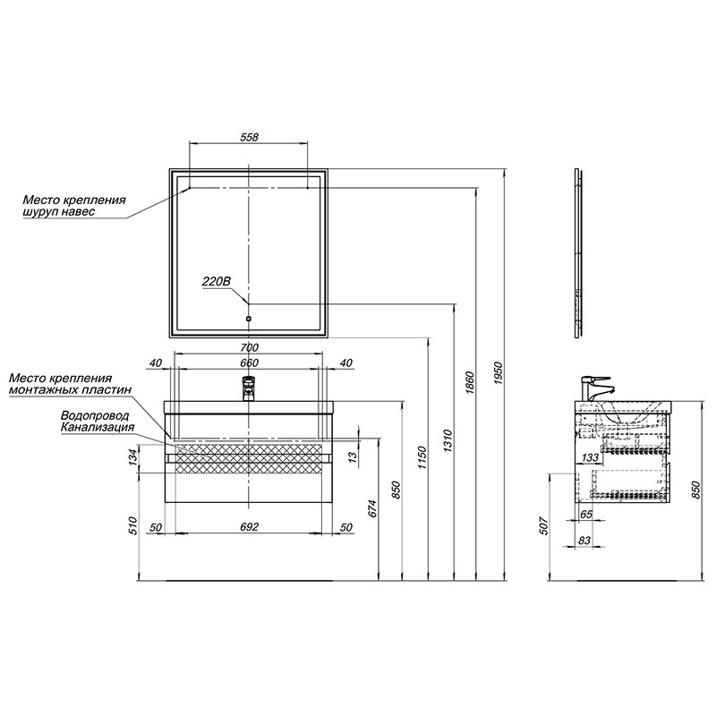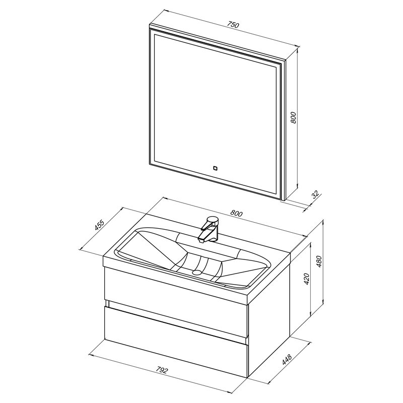 Набор мебели комплектуется зеркалом с LED-подсветкой из коллекции Nova Lite, соответствующий по цветовой гамме и стилистике.<br>