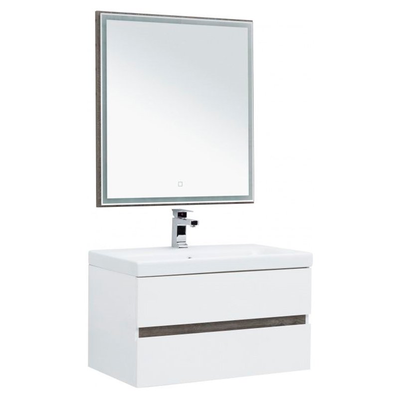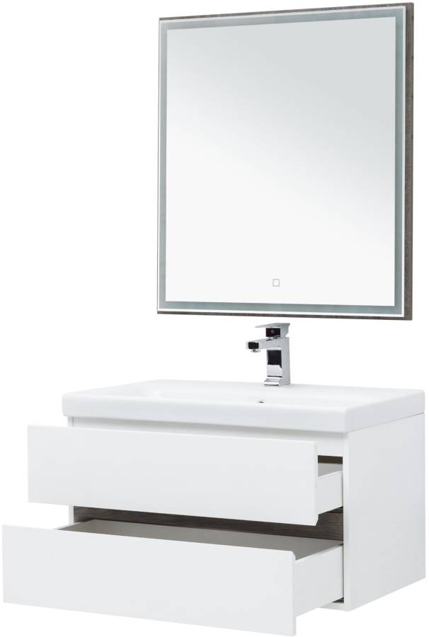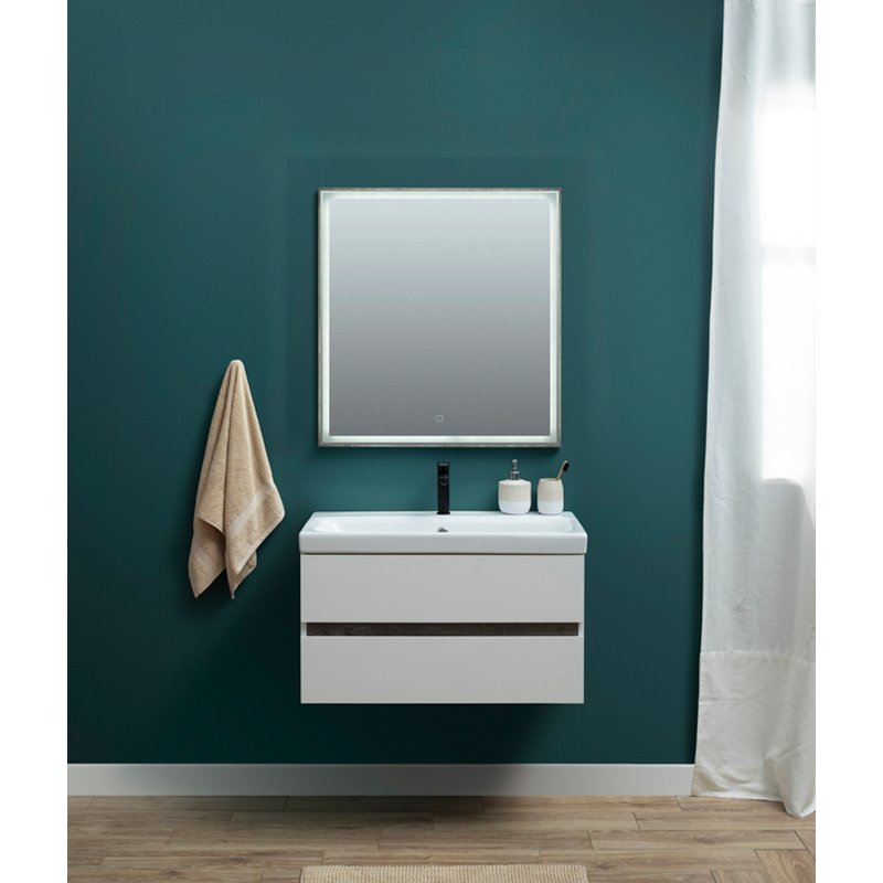 Набор мебели комплектуется зеркалом с LED-подсветкой из коллекции Nova Lite, соответствующий по цветовой гамме и стилистике.