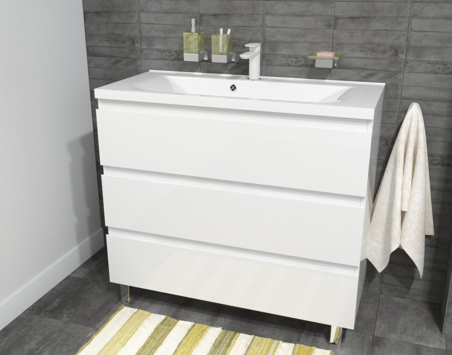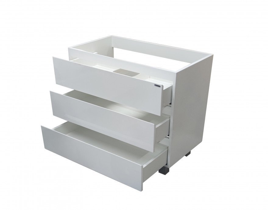 Мебель выполнена из влагостойкого ЛДСП и качественного MDF с использованием эмали RENNER (Италия). Ящики снабжены системой плавного закрывания. Для мебели используется фурнитура BLUM (Австрия).