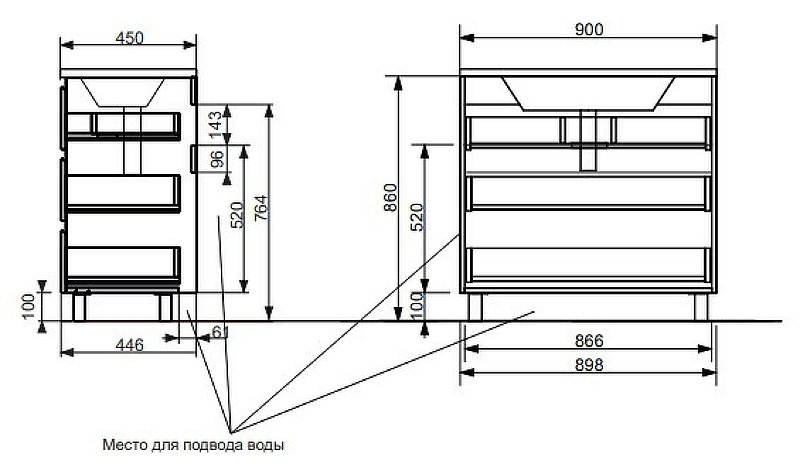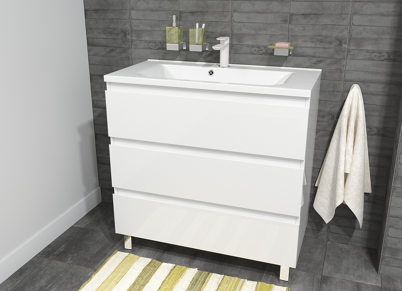 Мебель выполнена из влагостойкого ЛДСП и качественного MDF с использованием эмали RENNER (Италия). Ящики снабжены системой плавного закрывания. Для мебели используется фурнитура BLUM (Австрия).