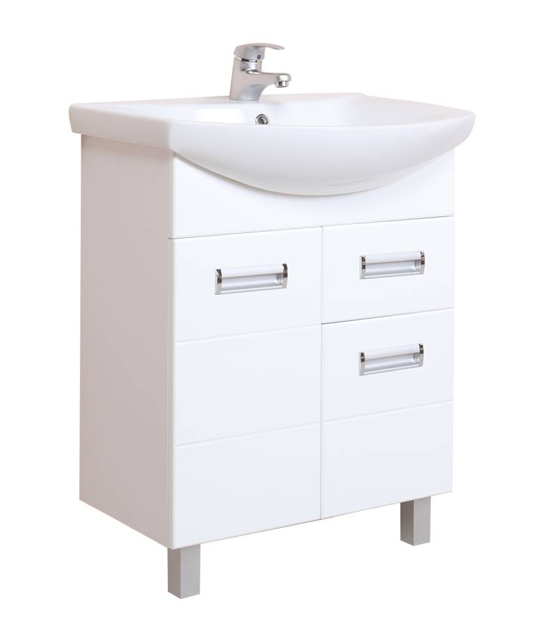 Размеры тумбы без учета раковины и ножек: 56x31x68 см.