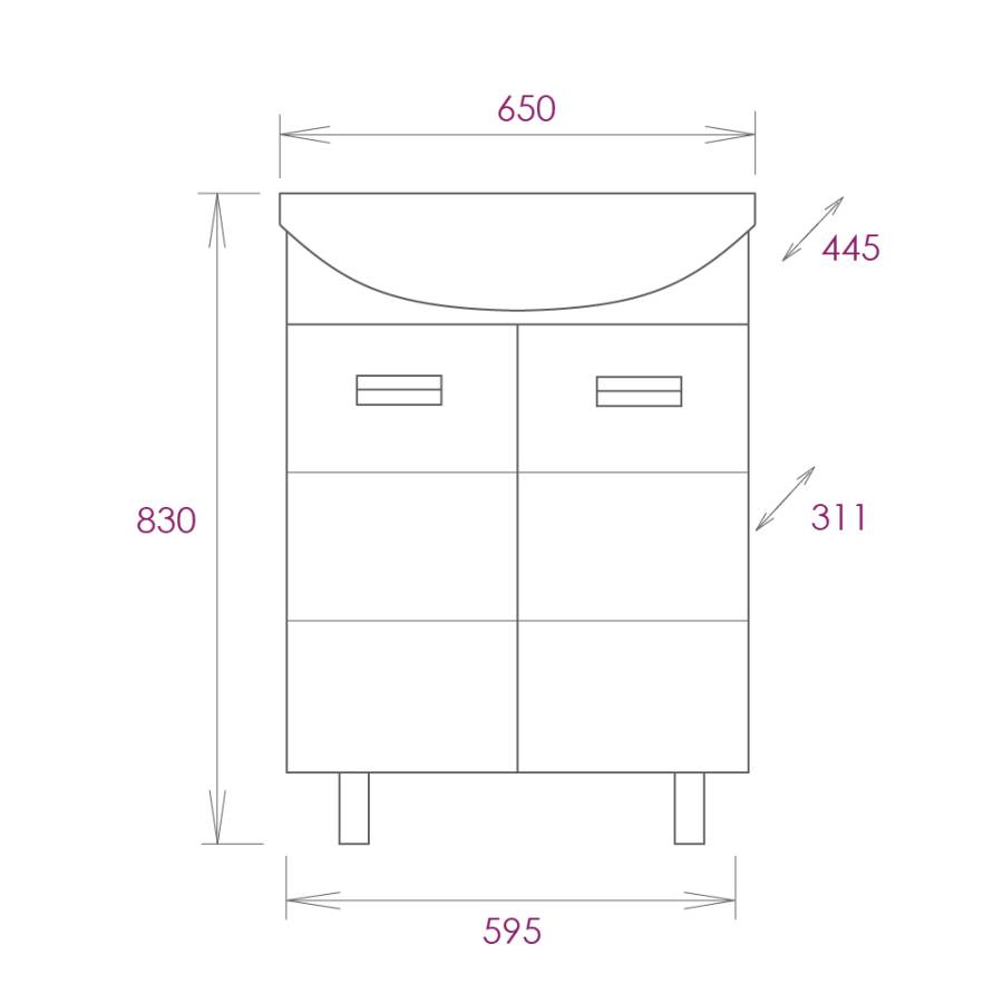 Размеры тумбы без учета раковины и ножек: 59x31x68 см.