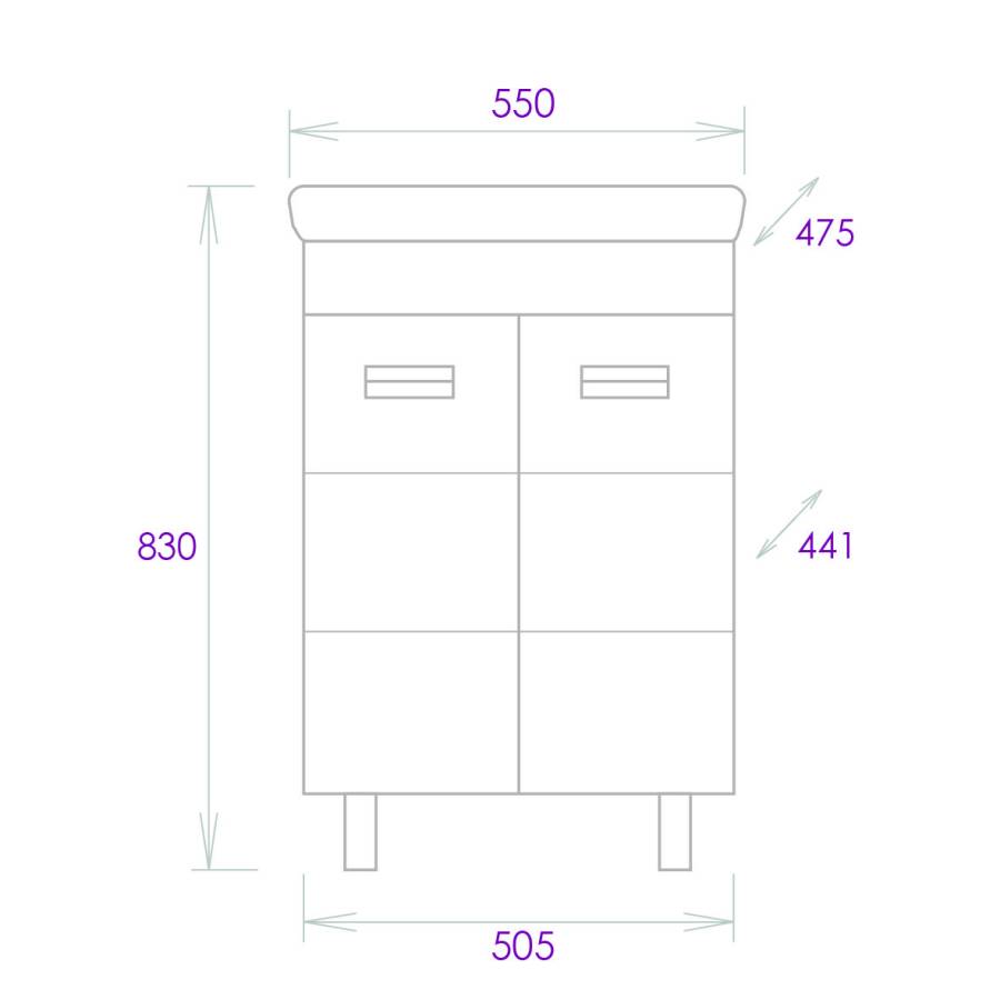 Размеры тумбы без учета раковины и ножек: 50x44x67 см.