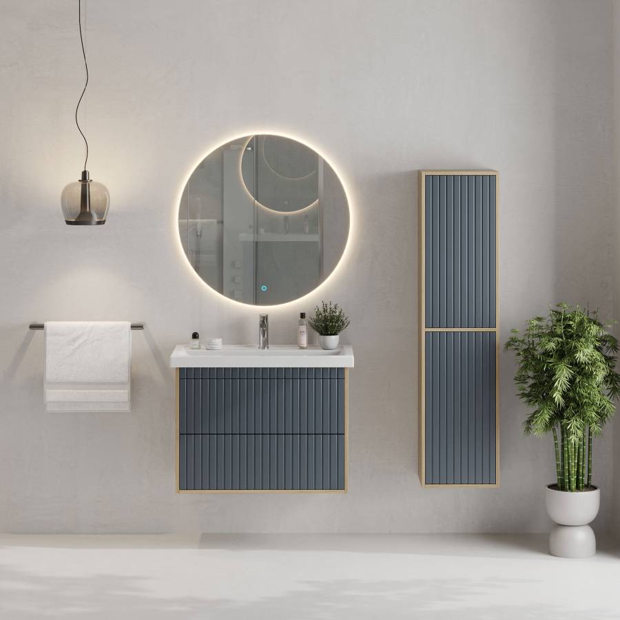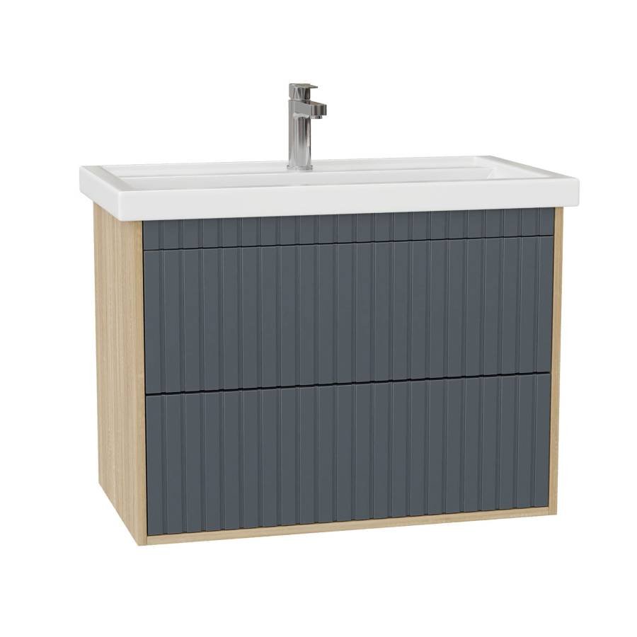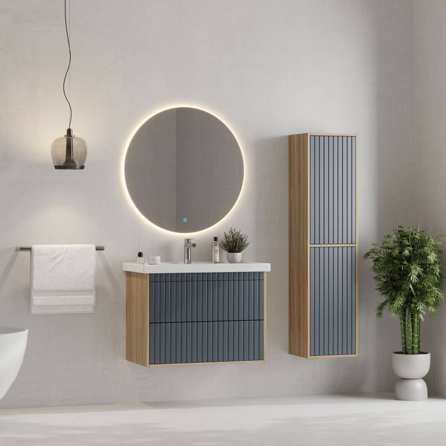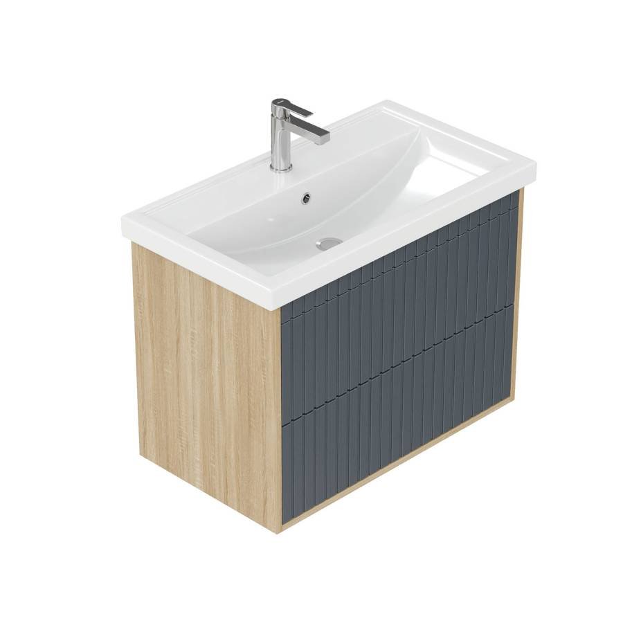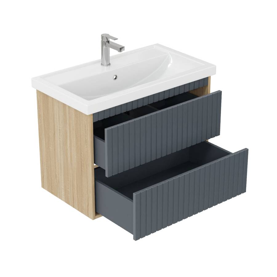 Рифленый белый матовый фасад с покрытием SoftTouch и корпус цвета дуба с роскошной текстурой подчеркнет изысканный вкус владельца и станет центральным элементом декора.