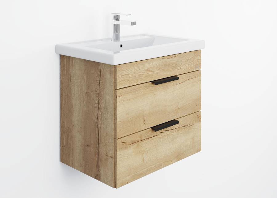 Тумба выполнена из ЛДСП, устойчивой к механическим воздействиям, перепадам температур и высокой влажности, при этом она надежно крепится к стене и не занимает место на полу, не создавая при этом сложностей в уборке помещения.