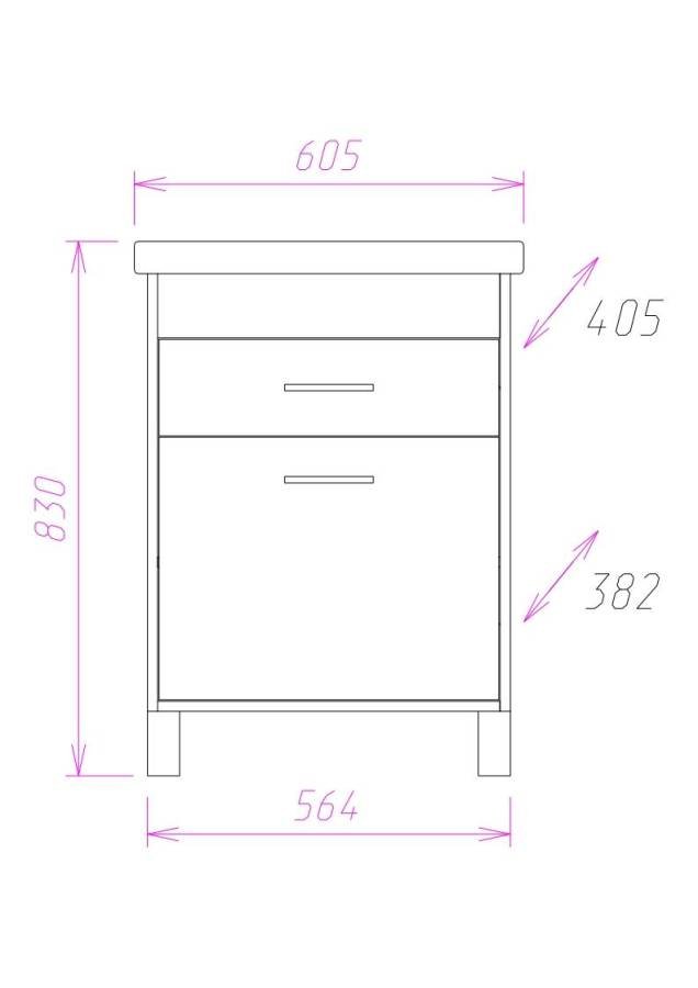 Размеры тумбы без учета раковины и ножек 56x38x68 см.