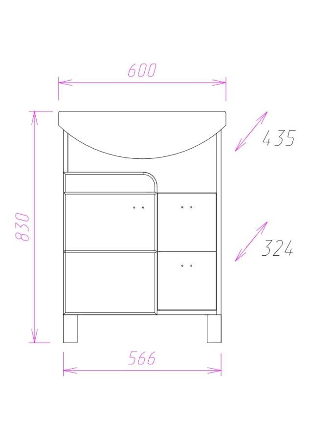 Размеры тумбы без учета раковины и ножек 57x32x68 cм.