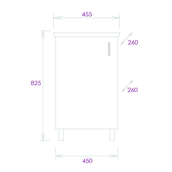 Размеры тумбы без учета раковины и ножек 45x26x68 cм.