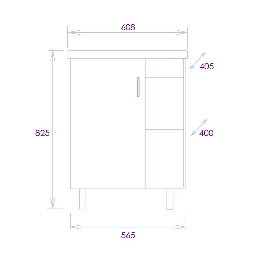 Размеры тумбы без учета раковины и ножек 56x40x68 cм.