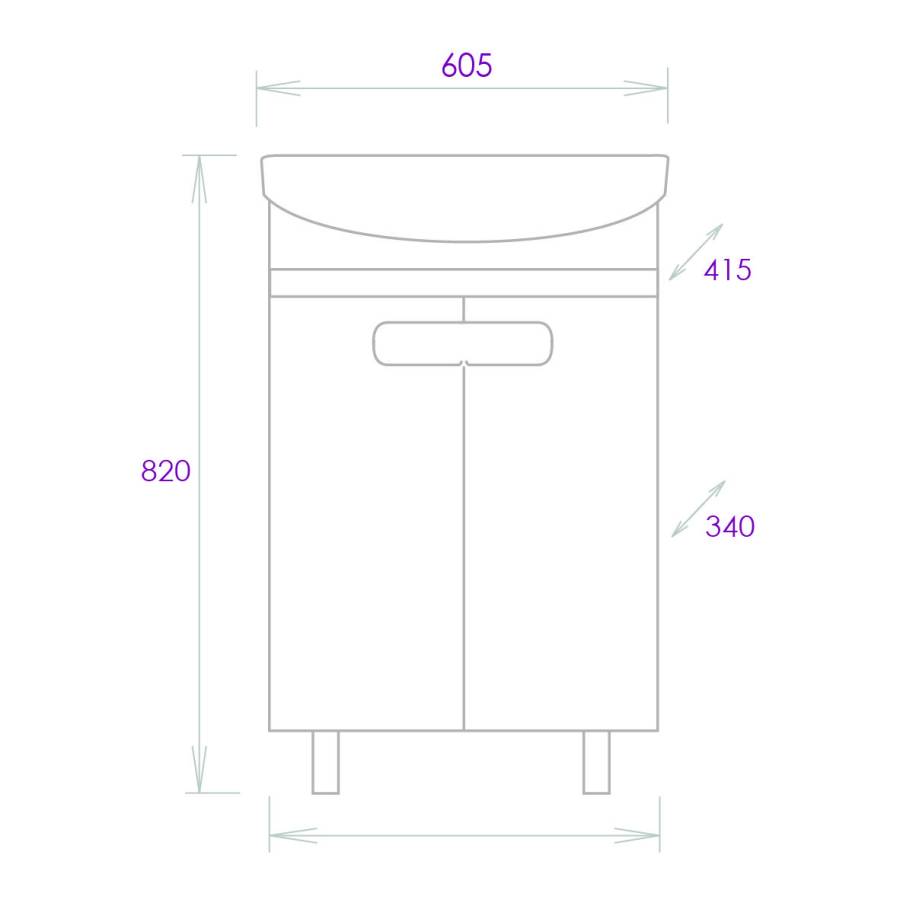 Размеры тумбы без учета раковины и ножек 55x34x68 cм.