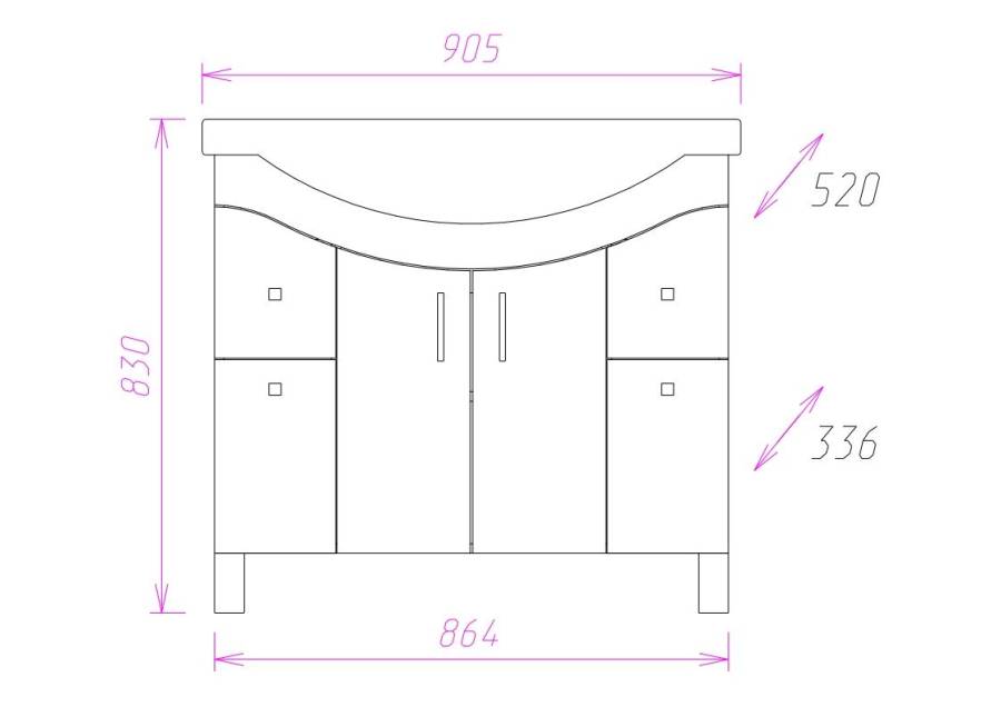 Размеры тумбы без учета раковины и ножек 86x34x68 cм.