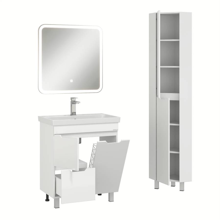 Пенал имеет два отделения за распашными дверцами с доводчиками, полки внутри регулируются по высоте. Ручки, изящно интегрированные в фасады, позволяют сделать эксплуатацию мебели более удобной и практичной.