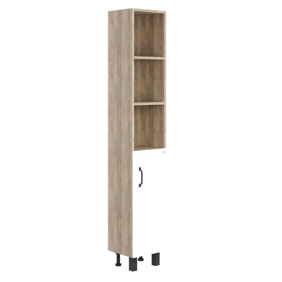 Открытые полки сверху обеспечивают быстрый доступ к часто используемым аксессуарам, а пространство за распашной дверцей снизу, снабженной системой плавного закрывания, станет удобным местом для хранения различных бытовых принадлежностей.
