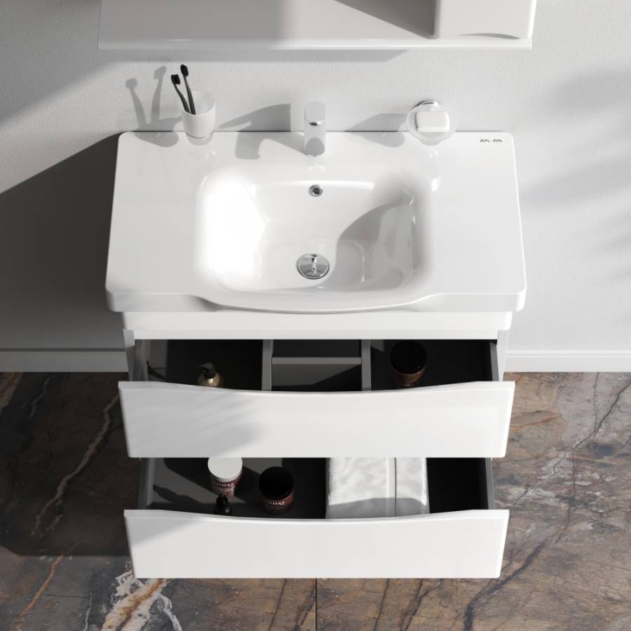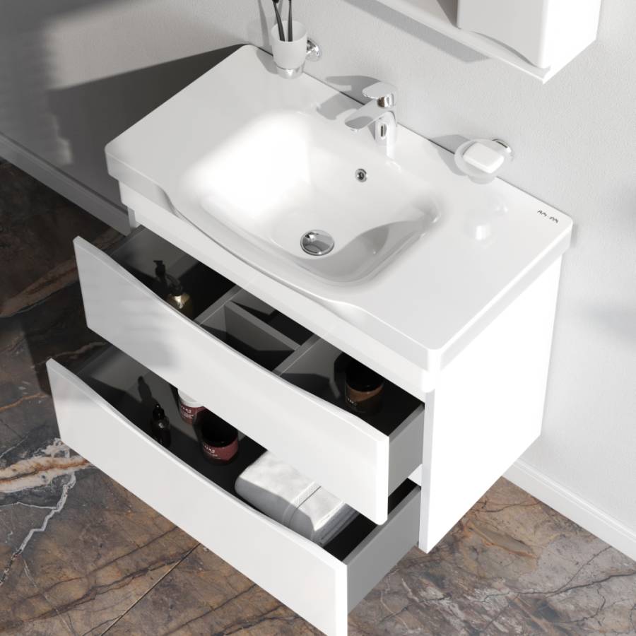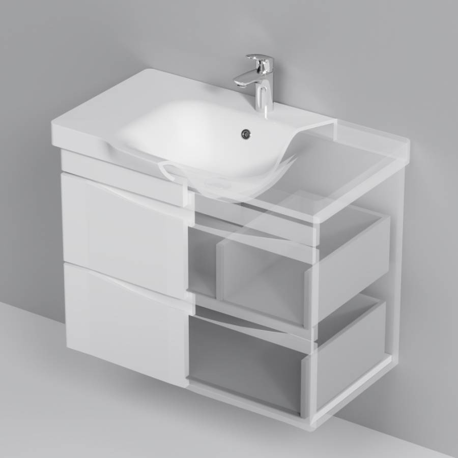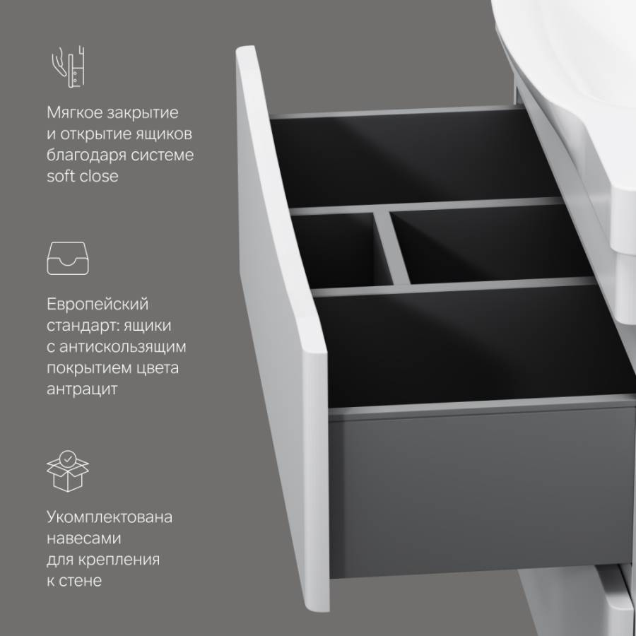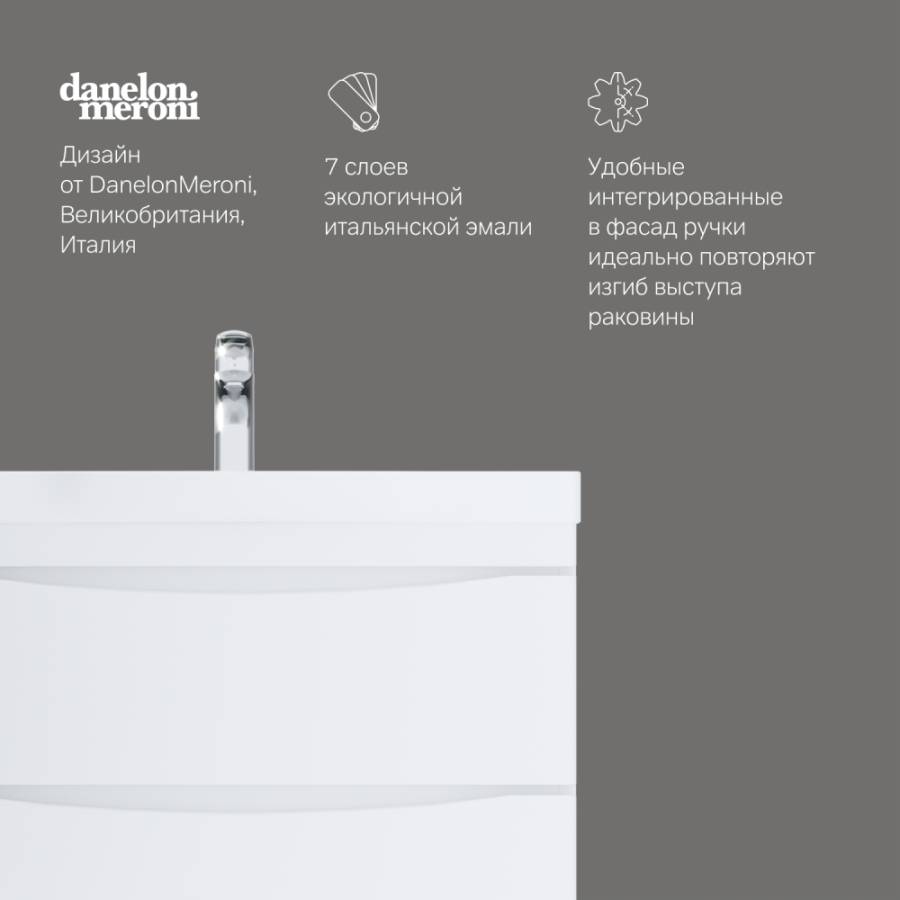 Утонченность в деталях: удобные интегрированные в фасад ручки идеально повторяют изгиб выступа раковины _x000D_