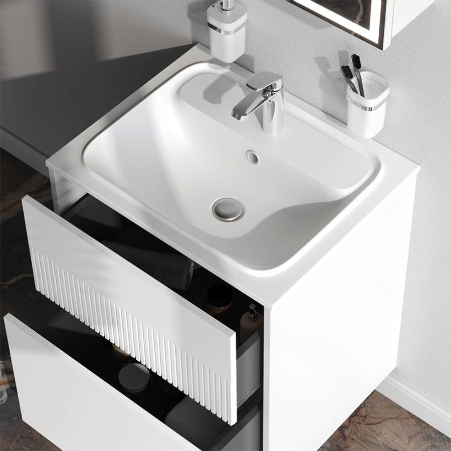 Удобный выдвижной ящик позволит хранить все необходимые средства под рукой. Невероятно мягкое открытие и закрытие благодаря направляющим скрытого монтажа с системой soft close. _x000D_