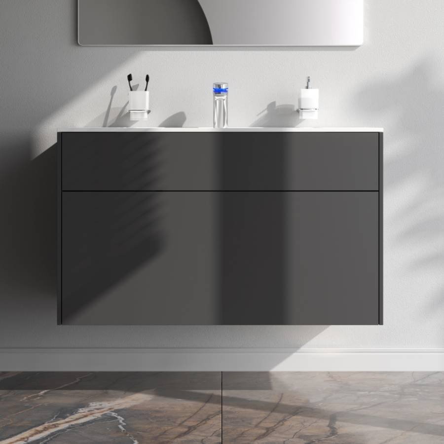 Ультратонкая раковина эргономичной формы с покрытием из мрамора идеально сочетается с мебельной базой _x000D_