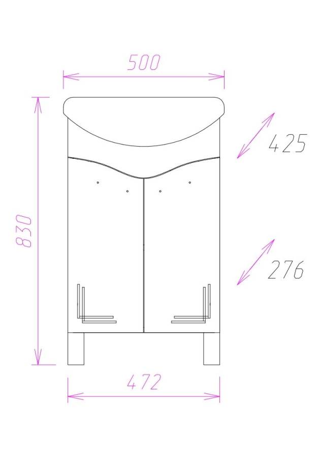Размеры тумбы без учета раковины и ножек: 47х28х68 см.