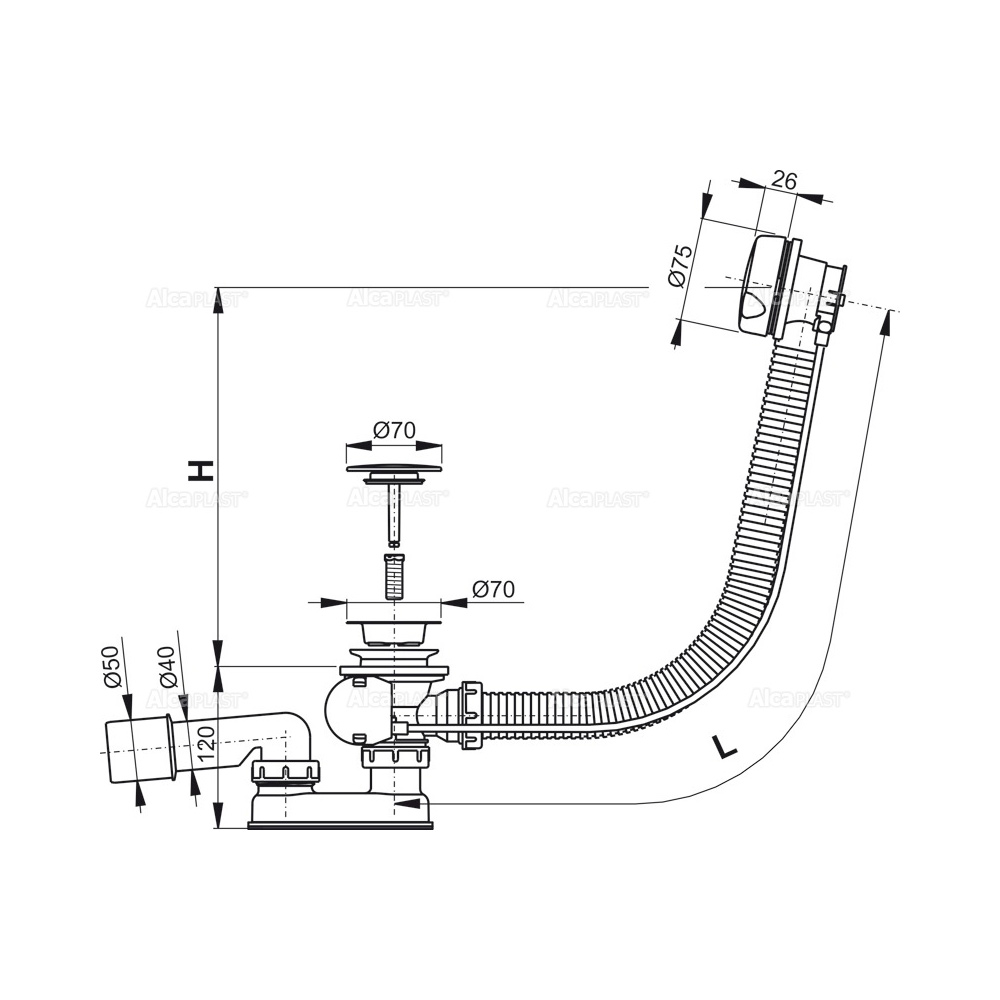Корпус сифона с системой перелива; Поворотная пластиковая накладка белого цвета; Белая пластиковая пробка; Сливная решетка из нержавеющей стали; Гидрозатвор сифона из полипропилена, сваренный ультразвуковым методом, устойчив к термическим и химическим воздействиям; Монтажный комплект; Профильное уплотнение. |