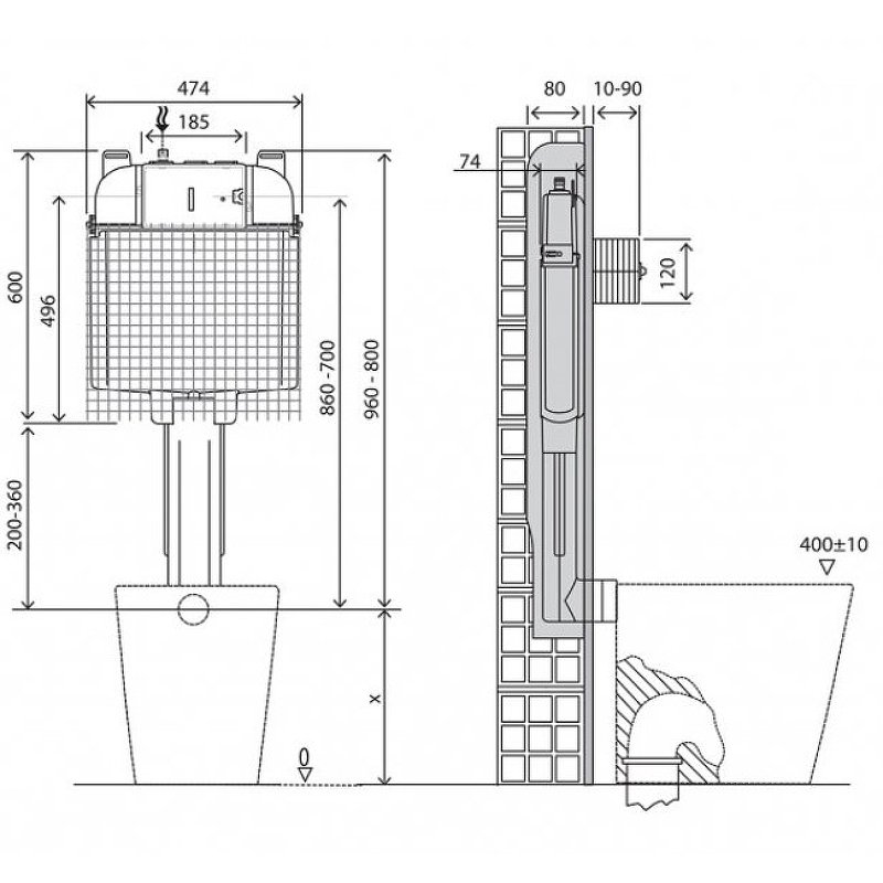 Сверху бачка |