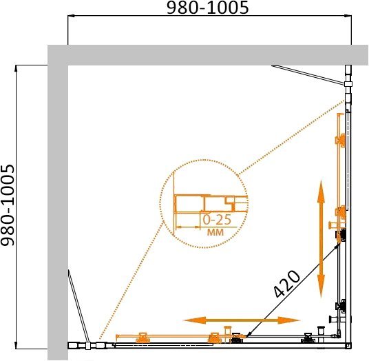 Напольный, на поддон, пристенный в угол |