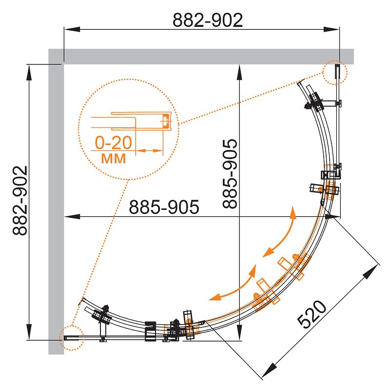 Напольный, на поддон, пристенный в угол |