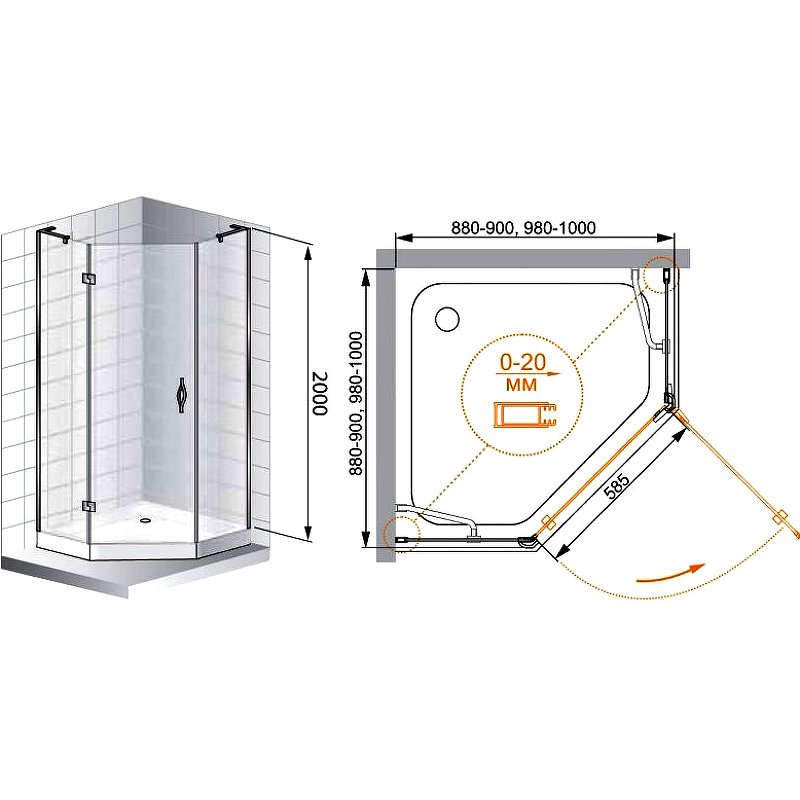 Напольный, на поддон, пристенный в угол |