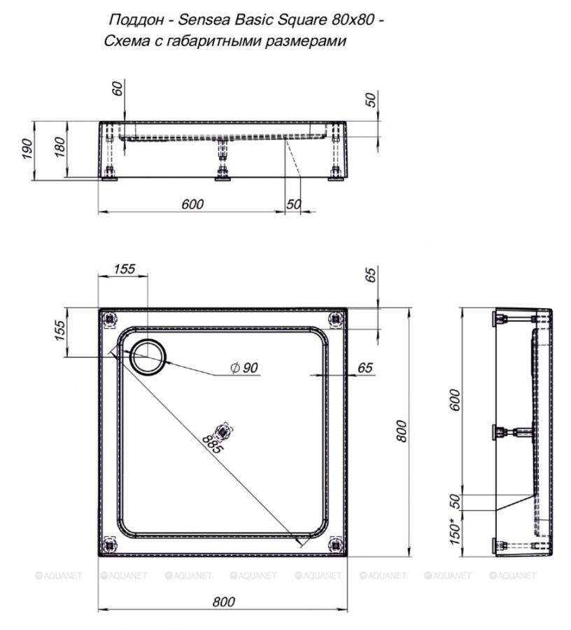 Поддон;Ножки;Сифон;Комплект крепления |
