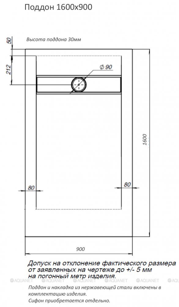 Поддон;Решетка слива из нержавеющей стали |