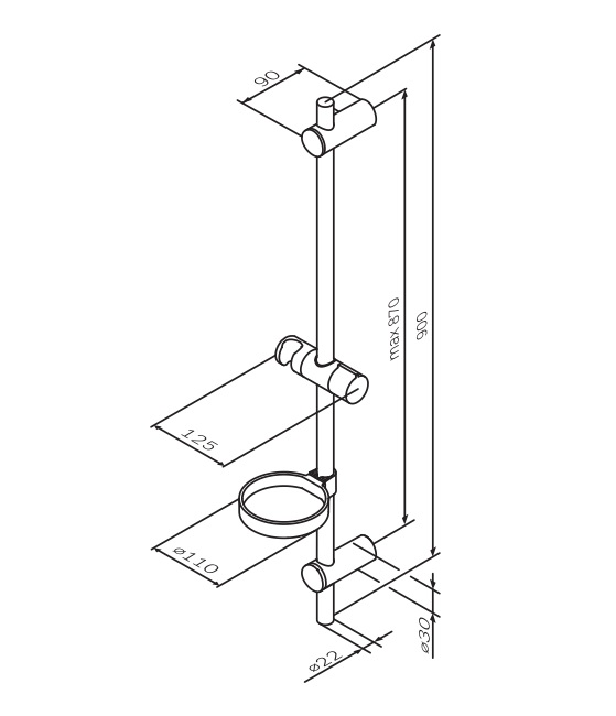 Штанга снабжена специальными держателями и мыльницей линии которых повторяются во всей коллекции подчеркивая единую концепцию дизайна.