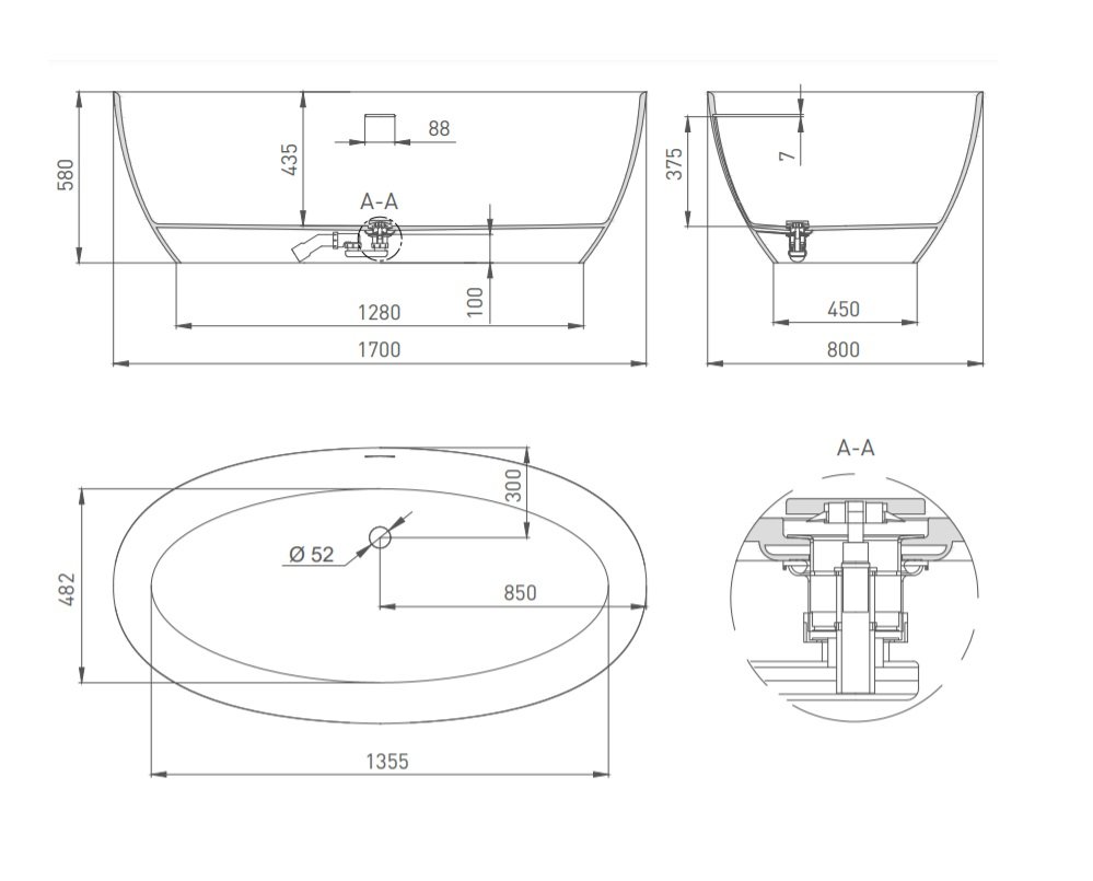 Слив-перелив интегрированный, сифон, донный клапан "Up&Down", цвет белый |