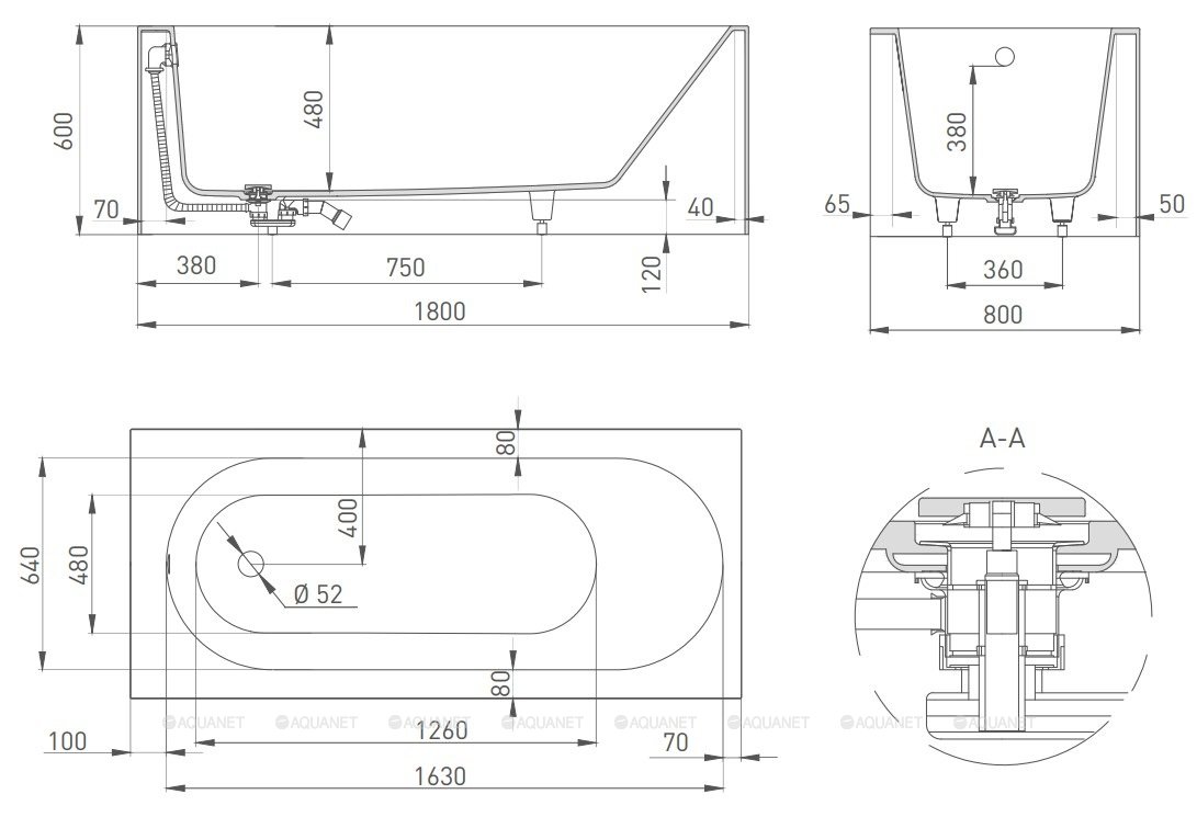 При длине 170 см (заменить в FABIA 180 на 180 см) эта модель не занимает много места — в этом заключается особенность пристенных ванн.
