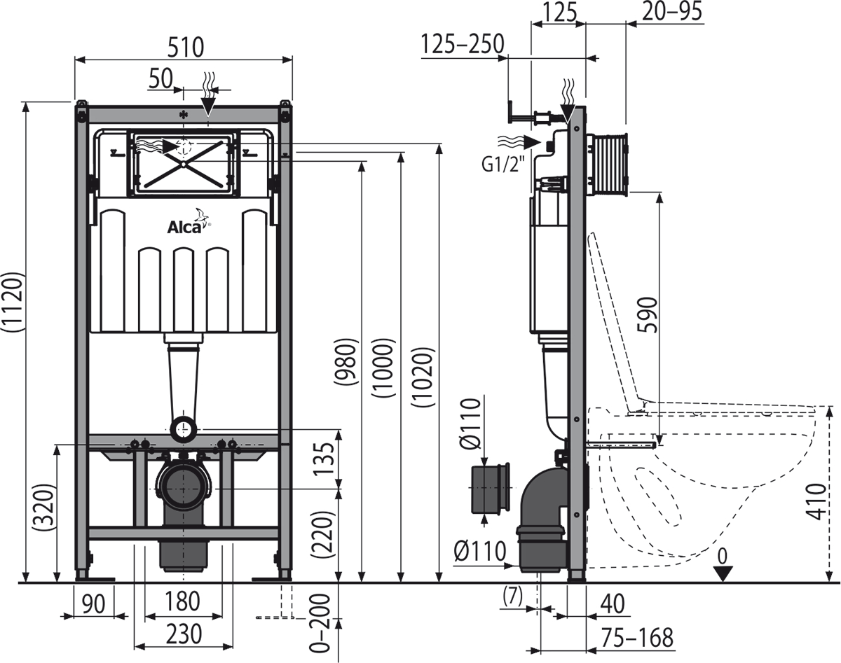 Экономичный смыв – 2 л малый смыв, 4 л большой смыв.