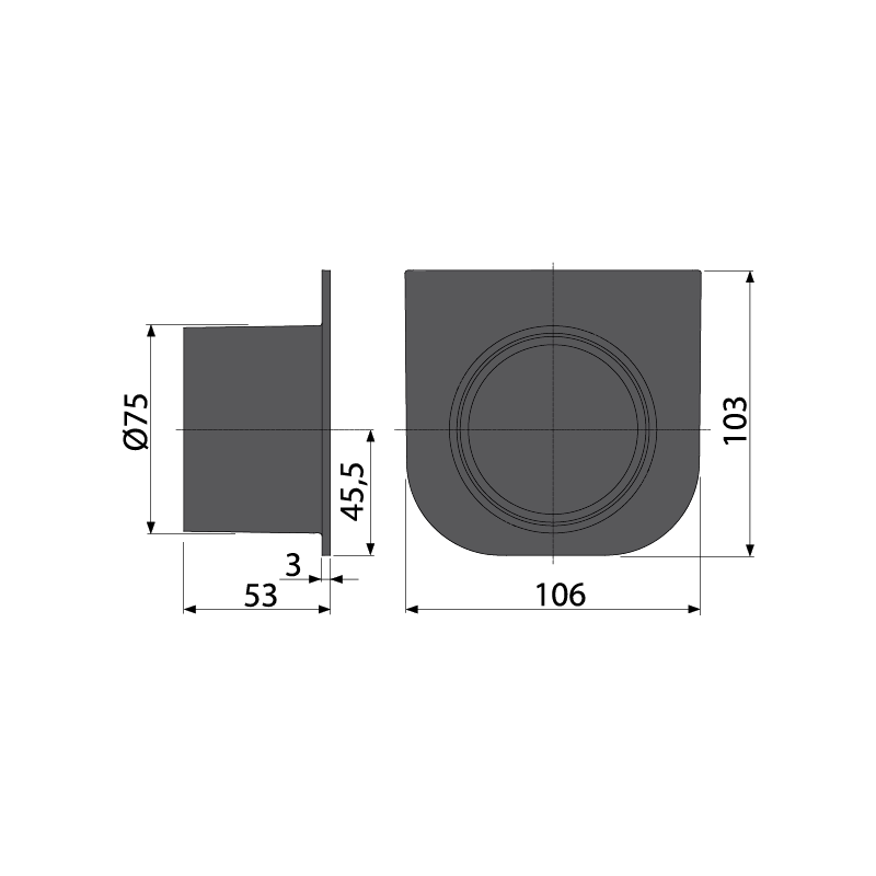 Заглушка с притоком Ø75 мм |