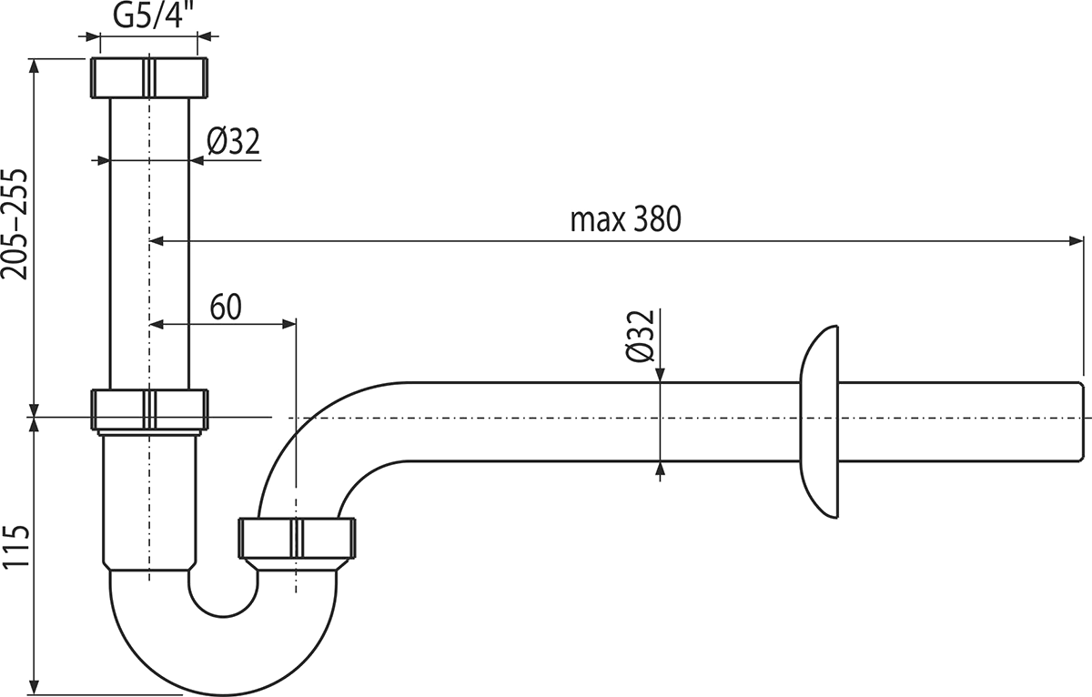 Корпус сифона. Резьбовое соединение 6/4″ для подключения слива мойки или раковины. Обрамление пластиковое. |