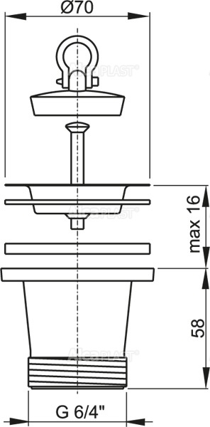 Корпус слива. Пробка из ПВХ. Сливная решетка из нержавеющей стали. |