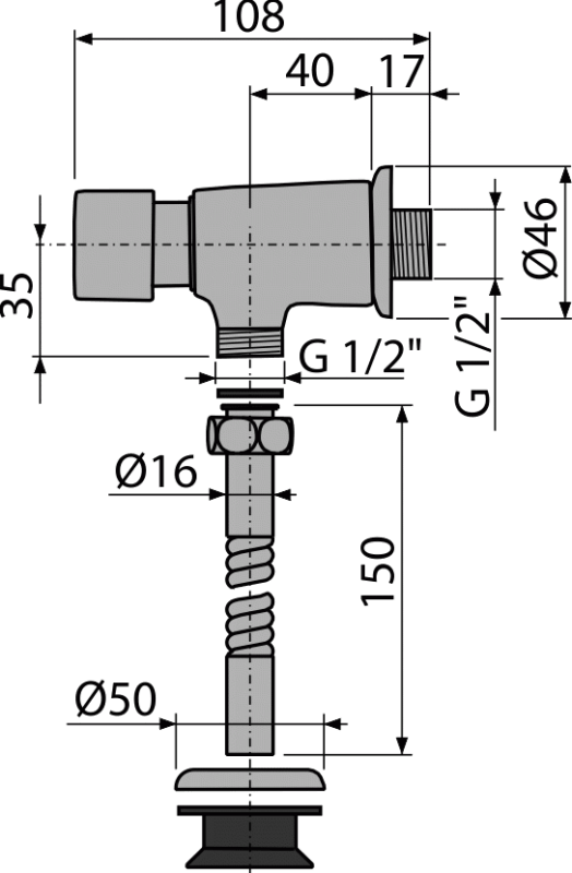 Корпус сливного вентиля; Комплект прокладок; Трубка для подключения к писсуару; Обрамление металлическое 2 шт. |