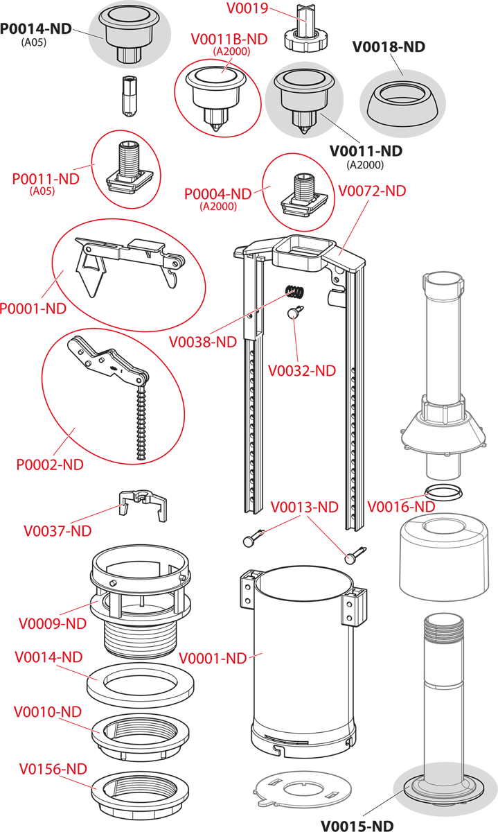Клапан; Выпуск с диаметром 60 мм для монтажа в бачке; Удлиненная кнопка START/STOP хромированная. |