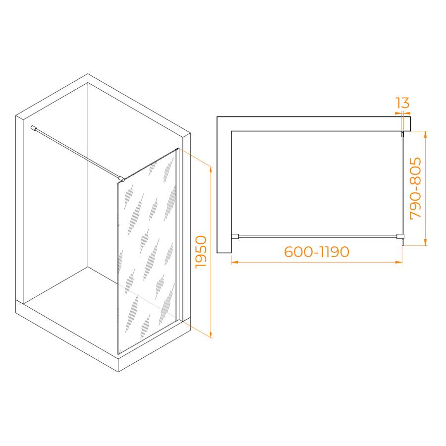 Высота перегородки составляет 195 см, что обеспечивает комфортное и безопасное пространство для принятия душа. Класс герметичности перегородки - 3, что гарантирует, что вода не вытекает из душевого пространства.
