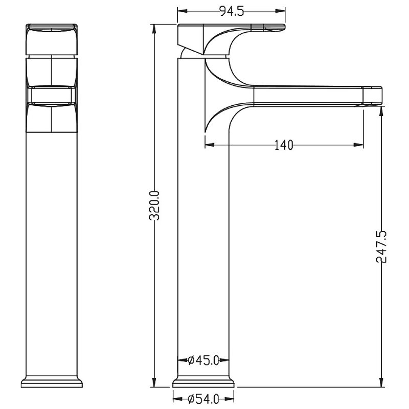 Высота излива см./мм.