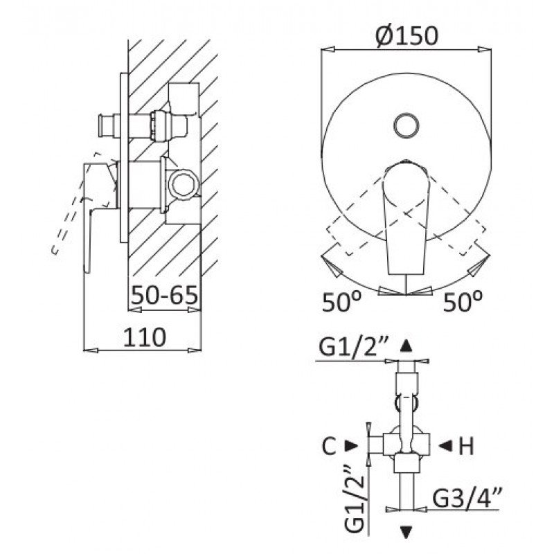 Скрытая монтажная часть, переключатель потоков |