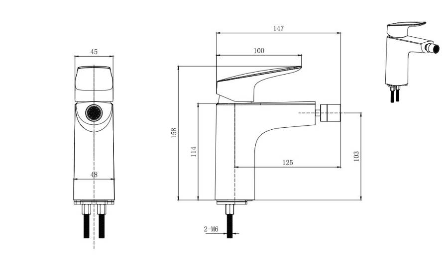 1. Смеситель 2. Гибкая подводка 50см 3. Монтажный комплект |